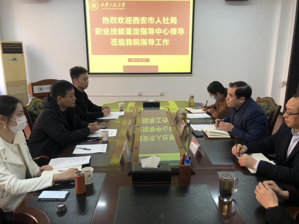 11月18日上午,西安市人力资源与社会保障局职业技能鉴定指导中心罗曼主任一行三人来到必赢官网金花校区,对必赢官网开展职业技能等级认定评价工作的开展情况,进行了调研,继续教育学院负责人、纺织行业职业技能鉴定所负责人等同志参加调研会。