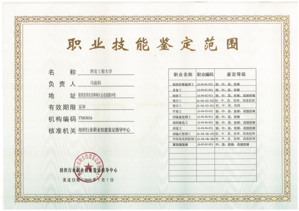 为切实加强必赢官网继续教育人才培养与劳动就业的联系,推进校企合作、产学研结合,充分发挥学校继续教育服务地方经济社会的职能,全面提升纺织行业从业人员的综合素质、职业能力和社会竞争力,根据纺织行业职业技能鉴定指导中心《关于申请设立纺织行业职业技能鉴定机构的通知》(纺职字〔2019〕15号)以及《人力资源和社会保障部关于实行职业技能考核鉴定机构备案管理的通知》(人社部〔2019〕30号)文件精神,必赢官网在充分调研的基础上,结合纺织服装行业的办学特色以及雄厚的师资力量,学校联合我省多家纺织企业,积极组织撰写申报材料,成功获批“纺织行业职业技能鉴定所”,开展陕西境内乃至西北地区纺织服装从业人员职业技能鉴定的组织、考试和协调管理工作。