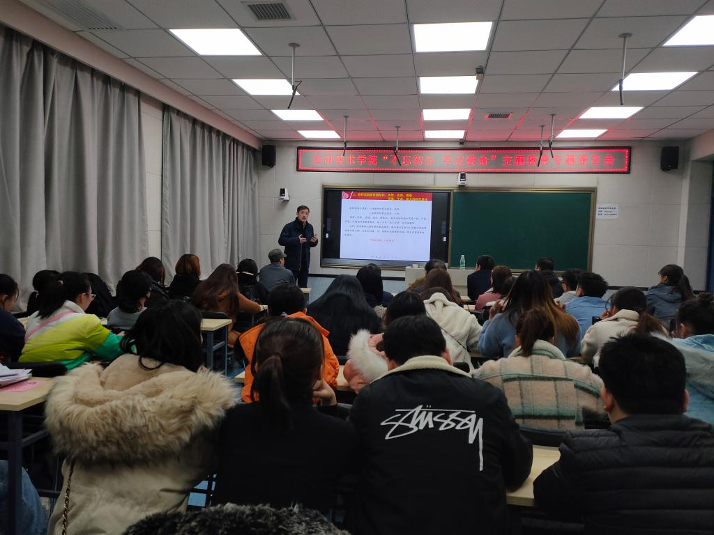 2019年11月29日下午,必赢线路检测3003党总支邀请马克思主义学院教师屈旻博士在金花校区主楼西配楼411室作了题为《新时代教师的初心与使命》主题报告。必赢线路检测3003全体党员及学生入党积极分子参加了此次报告会,报告由必赢线路检测3003党总支书记王宇主持。