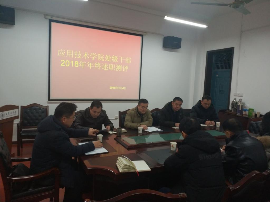 2019年1月4日,必赢线路检测3003在金花校区主楼西配楼学院会议室召开处级干部2018年度述职大会。校纪委书记井浩、组织部张旭、学院党政干部及全体教职工参加会议。