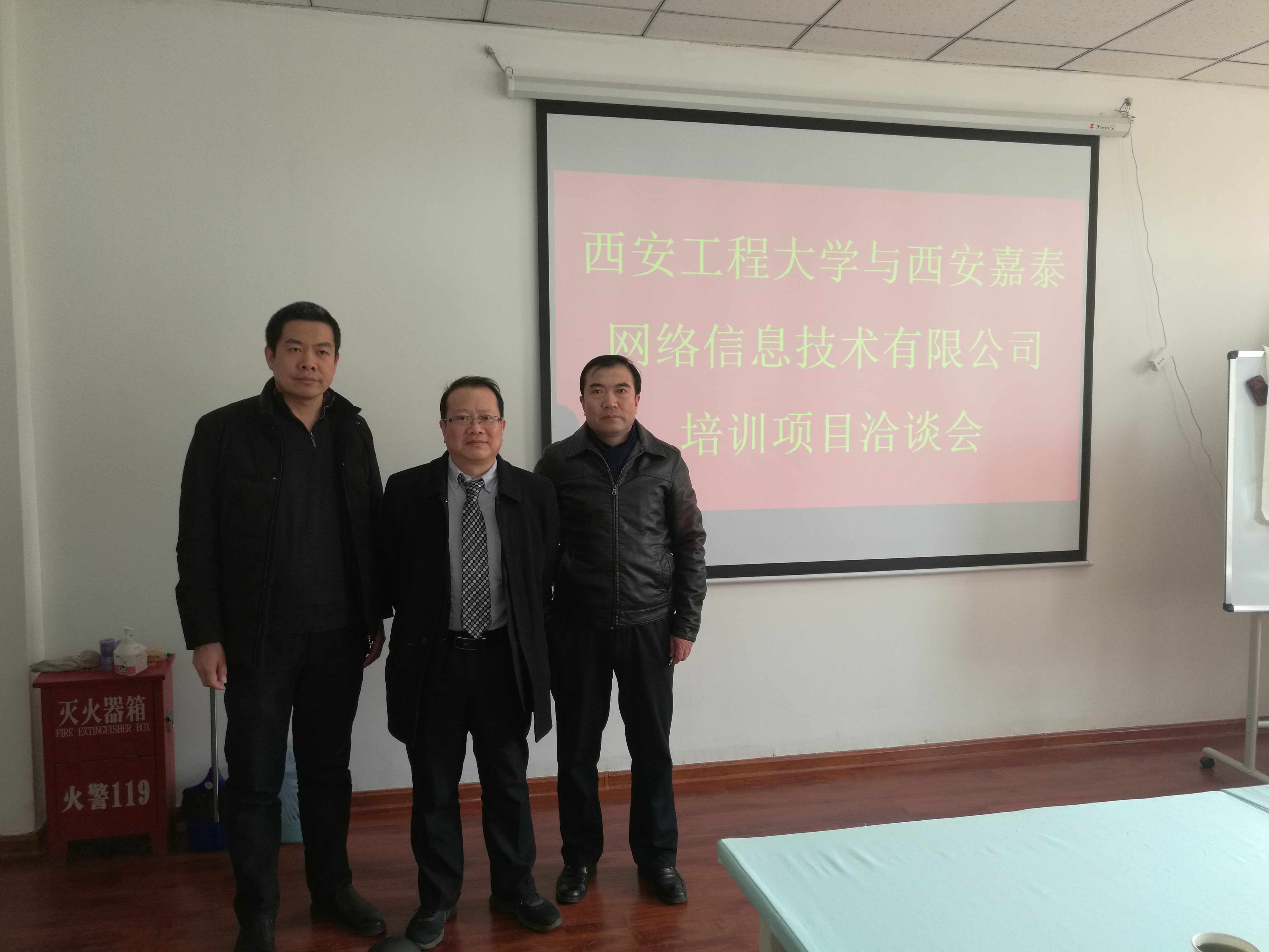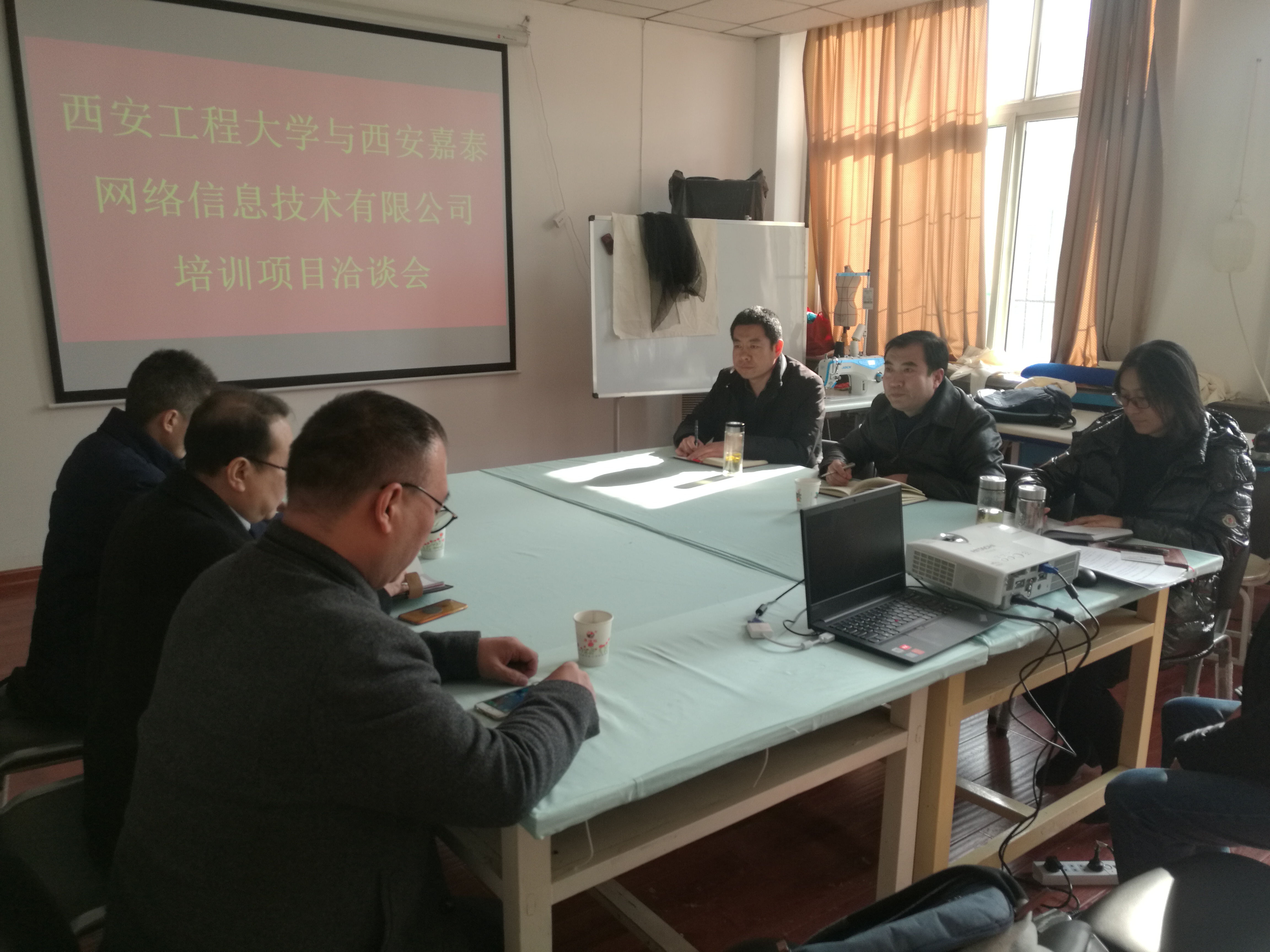 2018年12月24日上午,应用技术(继续教育、中澳国际)学院在学院313培训室召开与西安嘉泰网络信息技术有限公司的培训项目洽谈会,学院院长马保科、副院长刘玉森以及培训部、教务科、办公室负责人等参加了会议,会议由马保科主持。