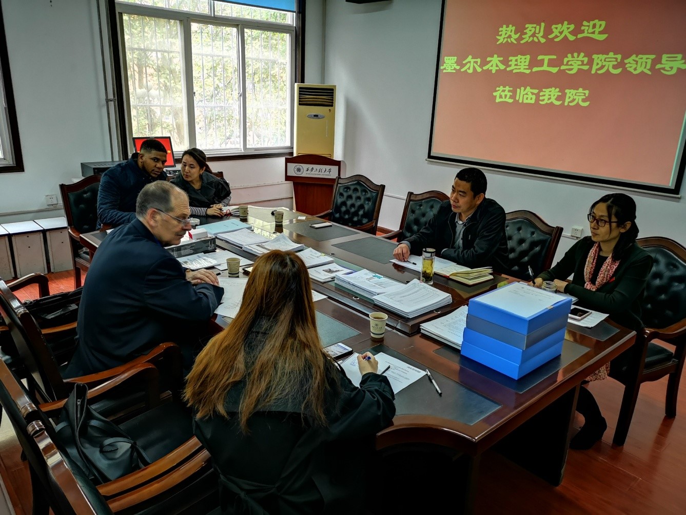 刘玉森副院长代表中澳国际学院对Mike Brearley一行的到来表示热烈欢迎,并向客人简要介绍了必赢官网办学历史、办学特色及中澳合作办学项目的运行情况,外宾对双方项目的执行情况给予了高度评价。刘玉森又详细介绍了必赢官网在学生教学、教学质量监督、学生培养及国际化办学方面采取的办法与措施,并表示必赢官网非常愿意和墨尔本理工学院加强学生互动交流。随后,Mike认真检查了合作办学项目中的教学执行以及教学监督等相关资料,对必赢官网的合作项目的执行情况给予了高度评价。
