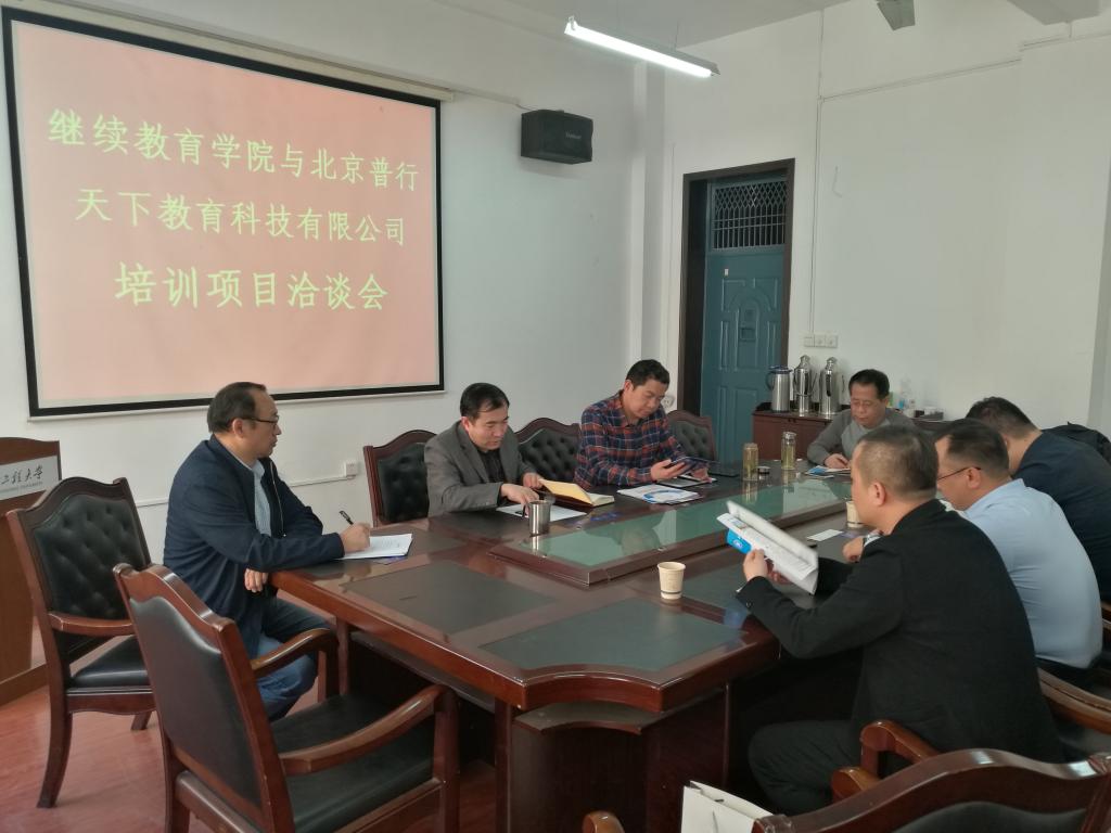 2019年3月18日下午,北京普行天下教育科技有限公司总经理王丹普一行三人来应用技术(继续教育、中澳国际)学院进行项目合作洽谈,学院院长马保科、副院长刘玉森以及培训部、办公室负责人等参加了洽谈会,会议由马保科主持。